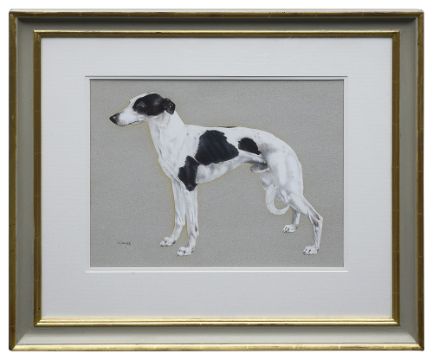 Vic Granger (British, b. 1931) 'A Black and White Greyhound'