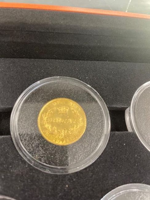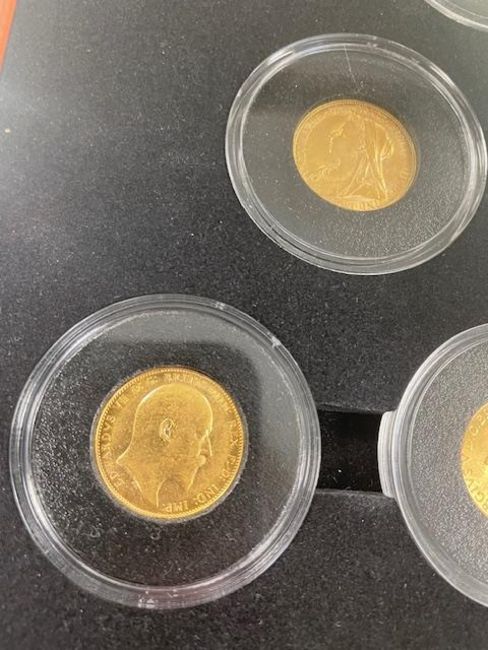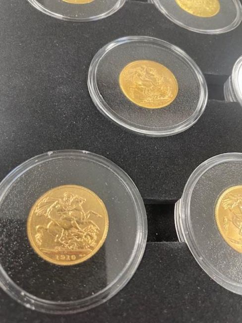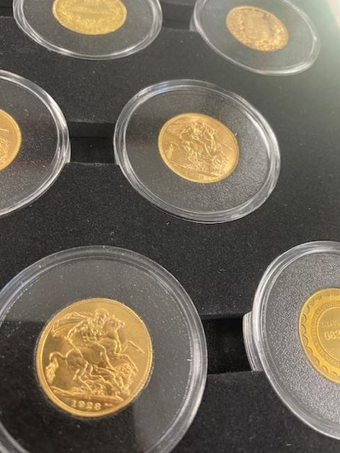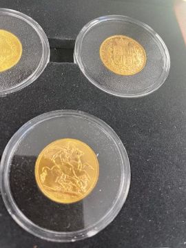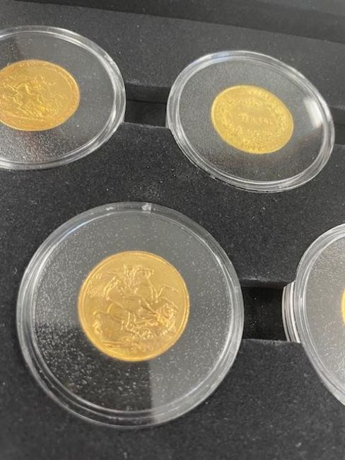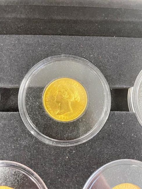 set of all 7 gold sovereigns from each branch of The Royal Mint.