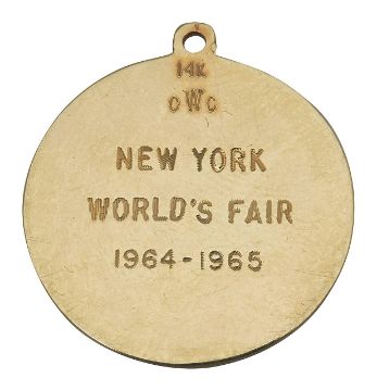 engraved to rear NEW YORK WORLD'S FAIR 1964-1965 marked '14K'