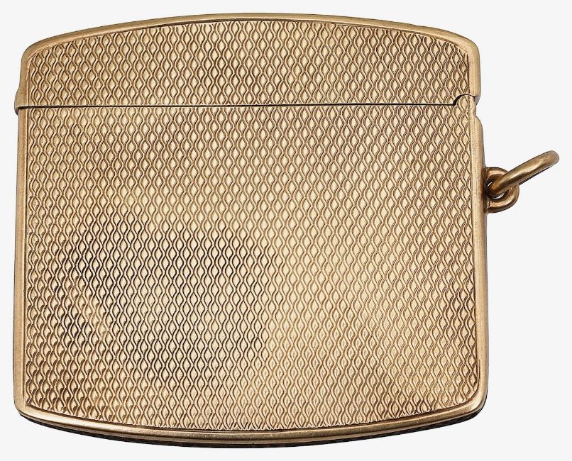 A George V 9ct gold engine turned vesta case
