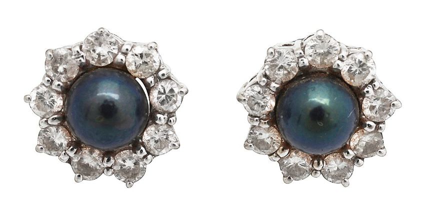 A pair of black cultured pearl and diamond-set ear studs