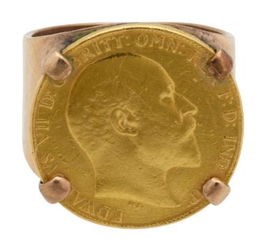 with St George slaying the dragon on rev, coin held in a loose fitting gold unmarked mount.