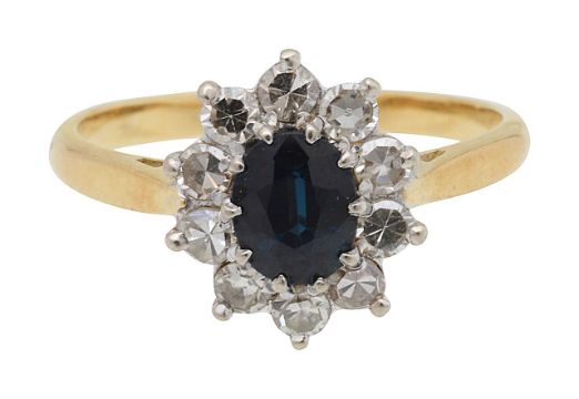 An 18ct diamond and sapphire cluster ring