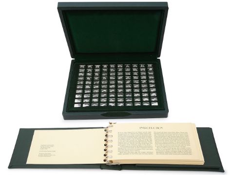 a cased set of 100 ingots each depicting a different car, accompanied by an index album, (2)