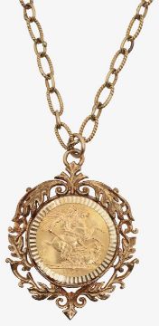 A full 1964 Elizabeth II sovereign on 9ct yellow gold necklace pendant