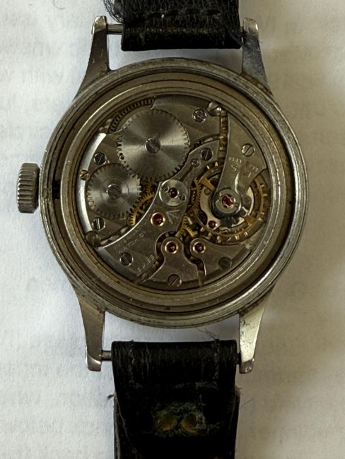 Property of a former watch repairer at the Herstmonceux Observatory from the 1950s. In the 1940s the RAF required an accurate timepiece for in flight navigation, both IWC and Jaegar Le Coultre came up with designs and produced watches. The version by Jaegar was withdrawn in the 1950s but the version by IWC continued to be used in the RAF until the 1980s.