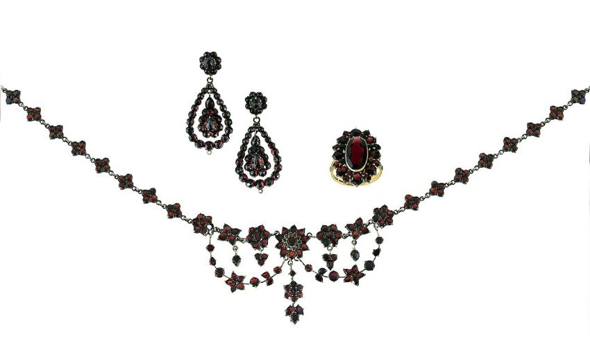 A 19th century matched Bohemian garnet demi-parure