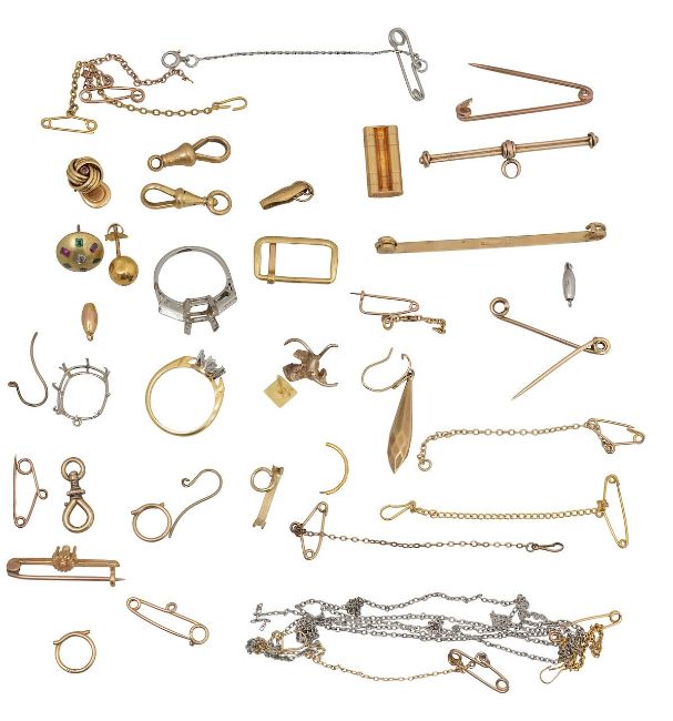 including safety chains, single earrings, ring shanks, brooch pins etc.