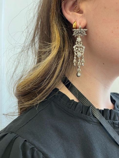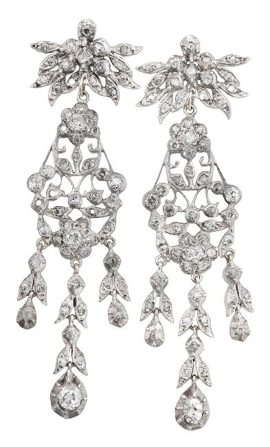 A pair of late 19th century diamond chandelier ear pendants