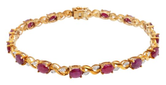 A 9ct gold ruby and diamond line bracelet