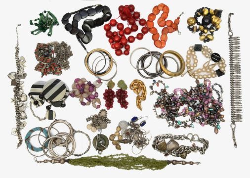 to include a pair of Christian Dior gold plated double maple leaf ear pendants in original pouch, a silver coin necklace and bracelet, silver and lapis ear pendants, beadwork bangle, Butler & Wilson ear pendants in original box, 9ct rolled gold bangle, an ethnic silver fringe necklace etc., (qty)