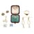 Condition: With wear commensurate to age, some damage to enamel on the flag charm. flower ear studs have glued on backs gold and stones are good condition, the jade collet comes out of mount,