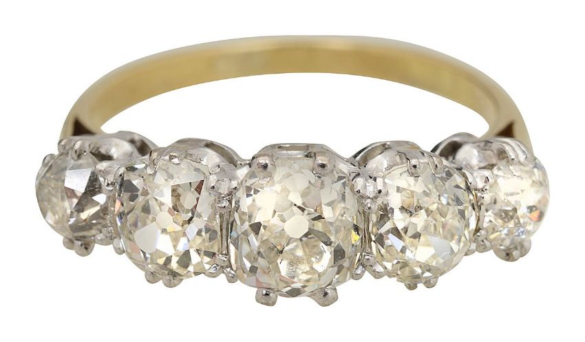 A five stone old cut diamond ring