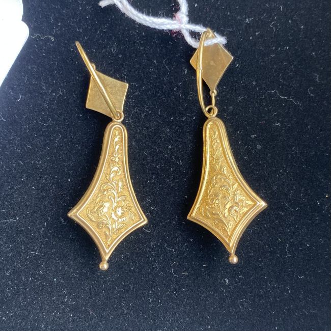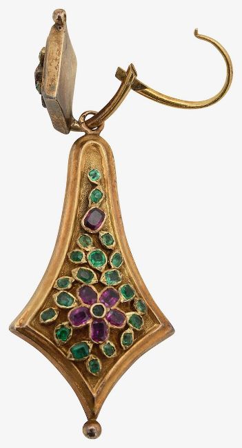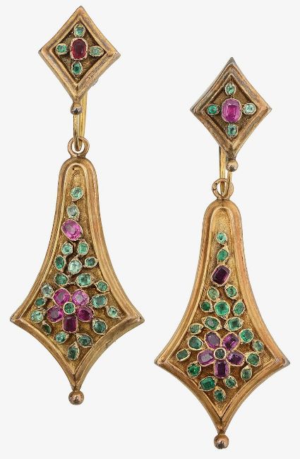A pair of Continental mid 19th century yellow gold and gem-set ear pendants