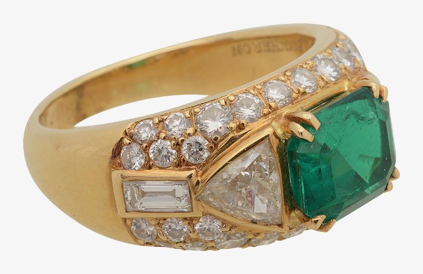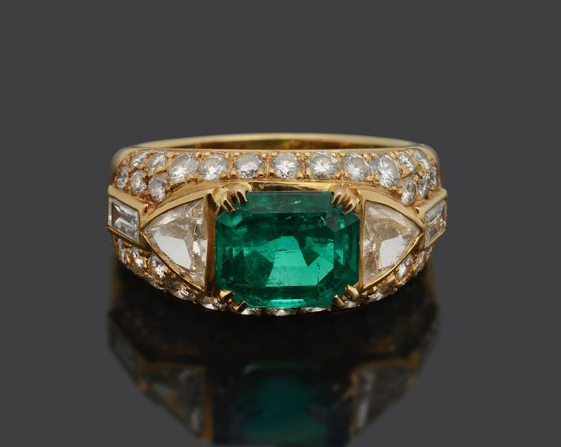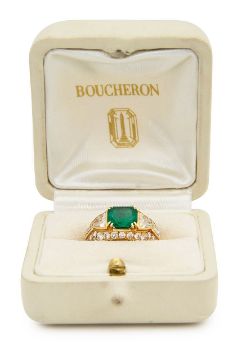 A French mid 20th century emerald and diamond-set ring by Boucheron