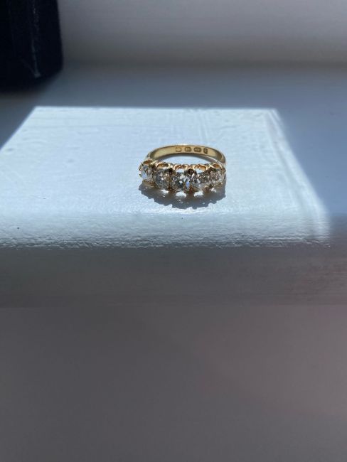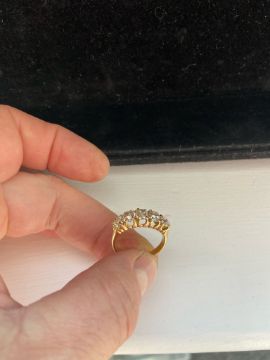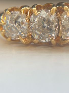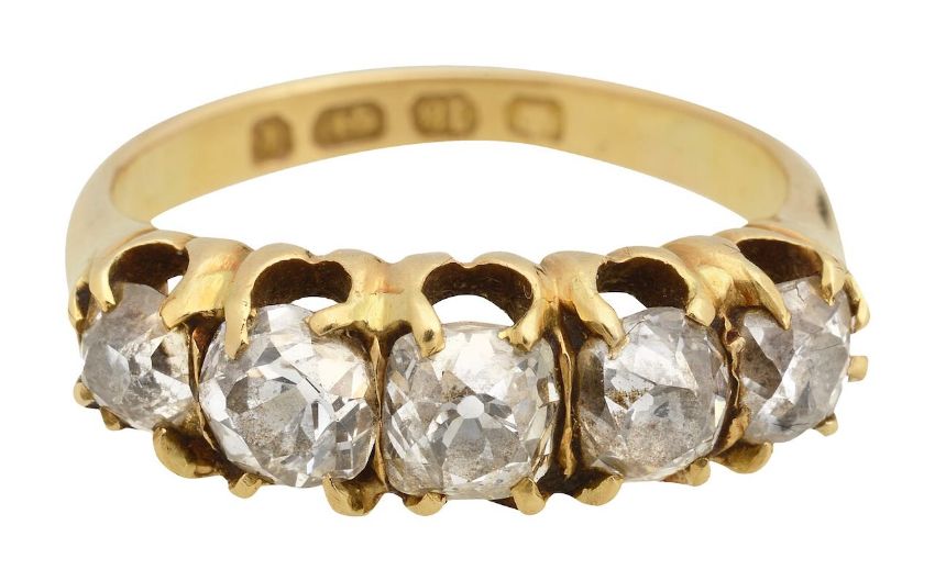 A late Victorian five stone diamond and 18ct yellow gold ring