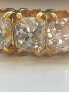 the slightly graduated cushion-shaped old brilliant-cut diamonds to the tapering shank, Birmingham hallmark 1879