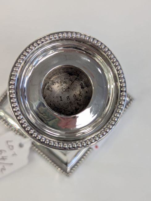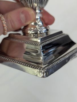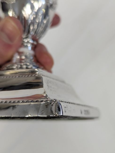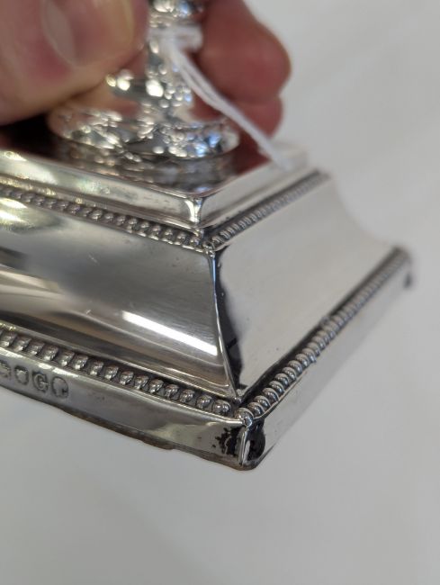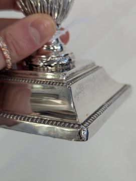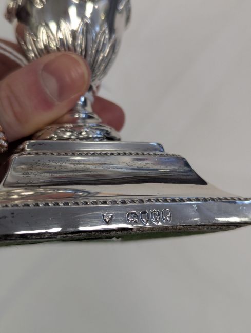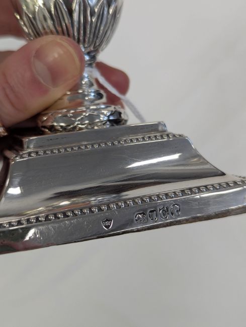 Condition: Minor dents to the corners. The hallmarks are clear and legible. Some light tarnishing and wear to the decoration. Both sit flat.