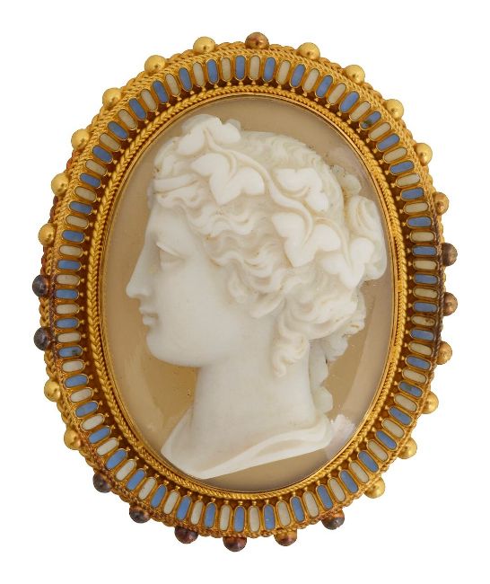 A yellow gold hardstone cameo in the Archaeological revival taste