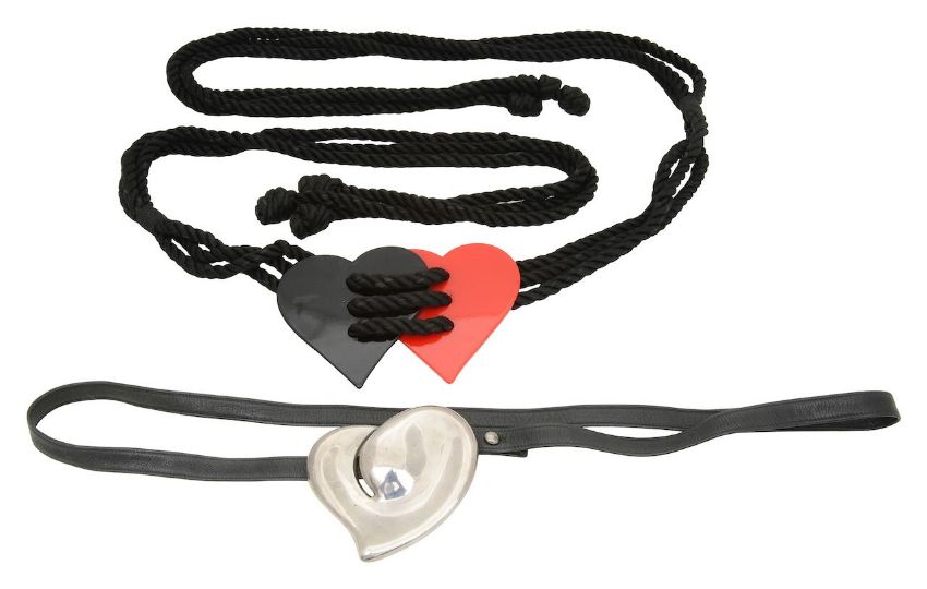 comprising of sterling silver heart buckle with slim leather belt by Elsa Peretti for Tiffany, and a 1960s Yves Saint Laurent double heart rope belt (2)