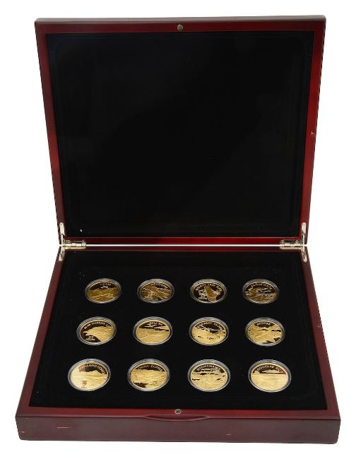 Solomon Islands. Elizabeth II 2005 twelve coin gold plated silver proof $25 dollars collection -The History of Powered Flight
