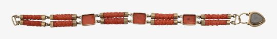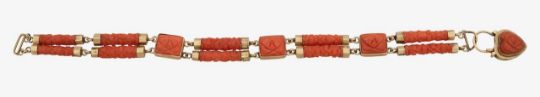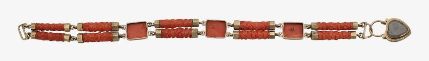 A carved coral and gold sentimental bracelet