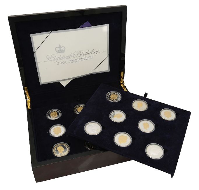 United Kingdom and Commonwealth. Elizabeth II 2006 seventeen coin gold plated silver proof commemorative Eightieth Birthday collection