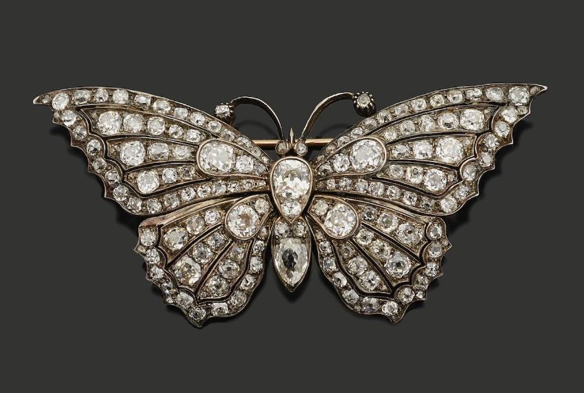 A large and impressive mid Victorian diamond-set butterfly brooch