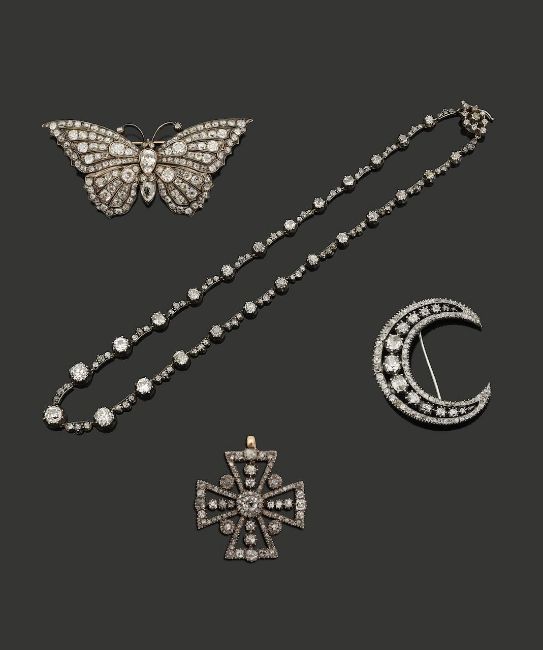 set throughout with old brilliant-cut, old-cut and rose-cut diamonds, mounted in silver and yellow gold