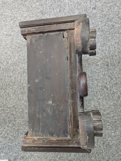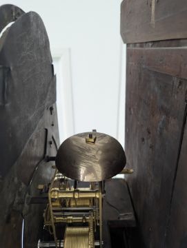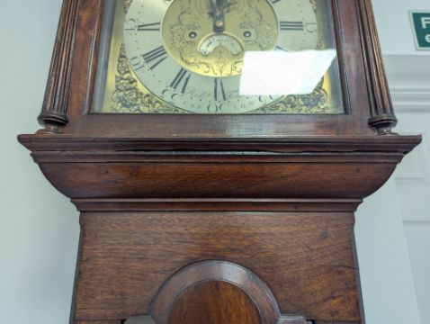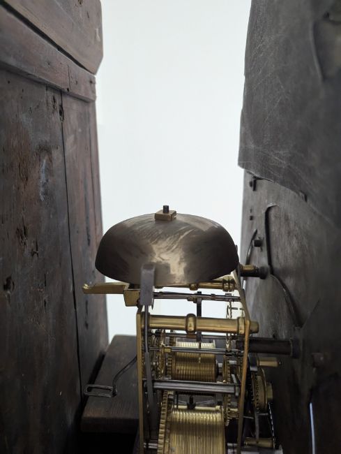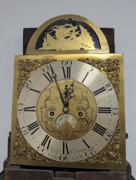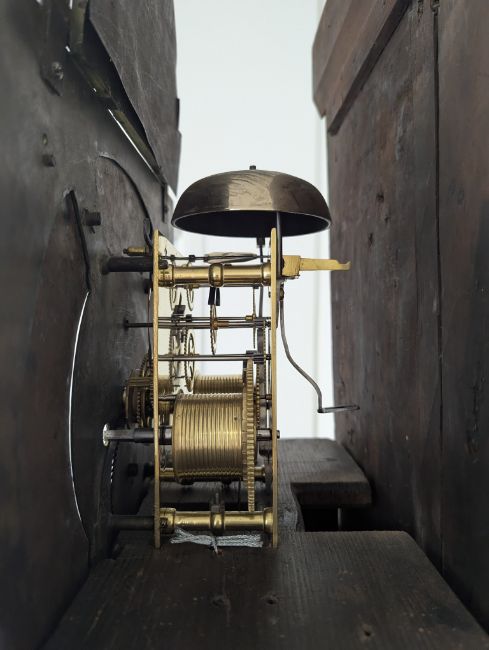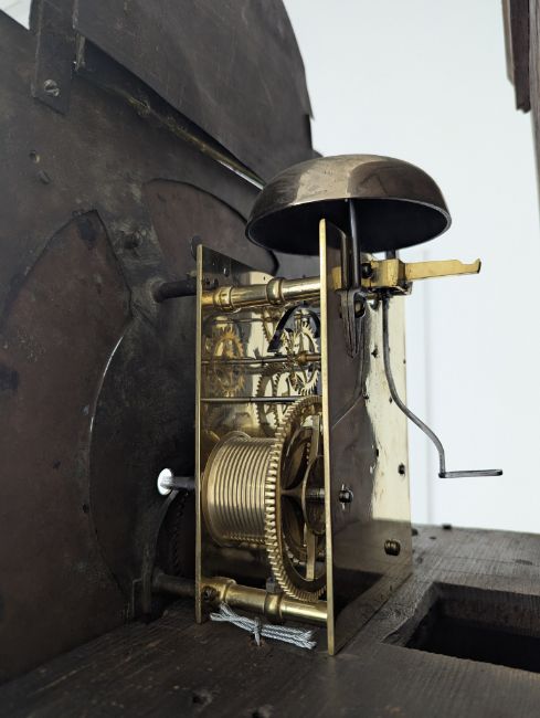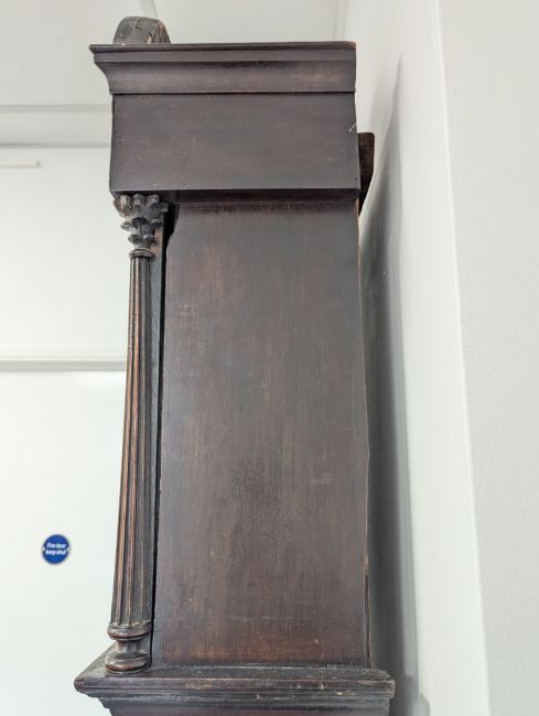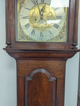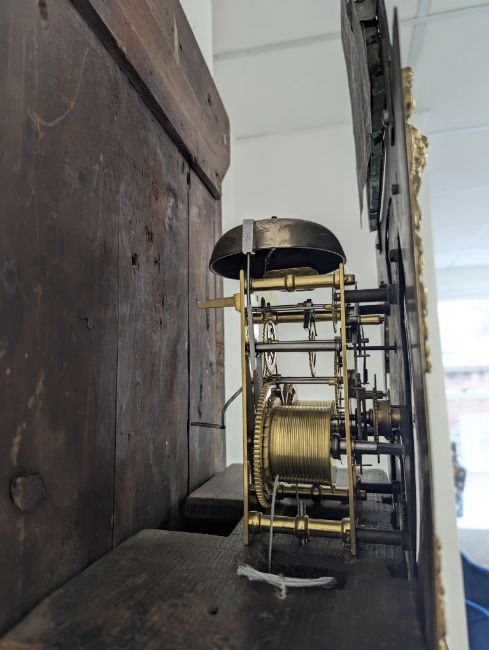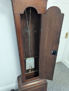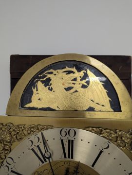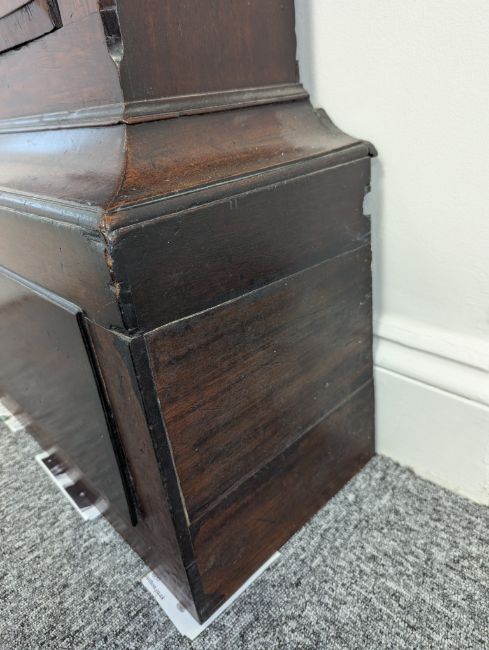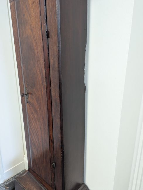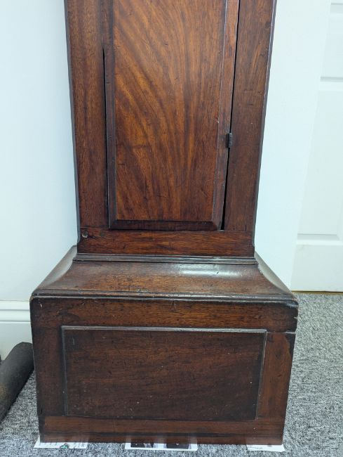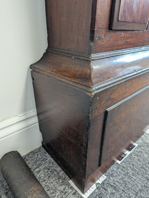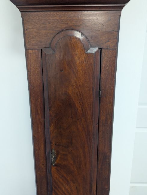 Condition: Dial in good clean condition, added arch, replaced minute hand. Movement is complete, clean and looks as though it would run but not tested, escape wheel replaced. Associated case has old losses, scuffs and marks throughout, plinth reduced and rebuilt.