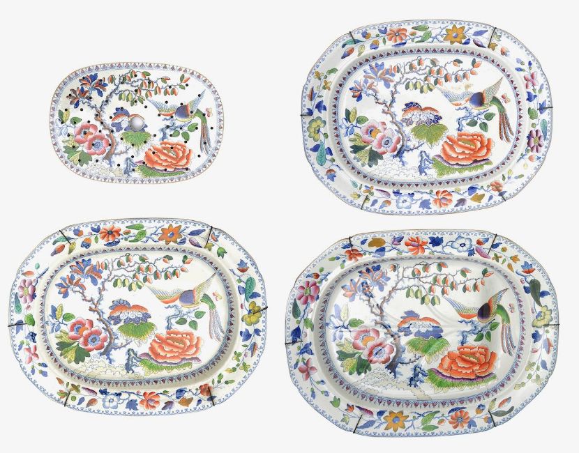 early 19th century, in the Exotic Bird pattern, central fields within similar borders; together with a matching drainer
