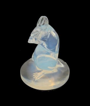 'Souris', c.1925, a clear glass seal stamp, modelled as a mouse, on a circular base, signed 'R Lalique France'