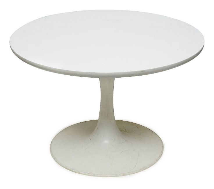 a tulip side table, c.1960, with a circular top, over a painted white metal base