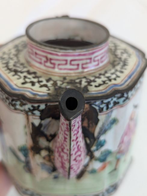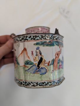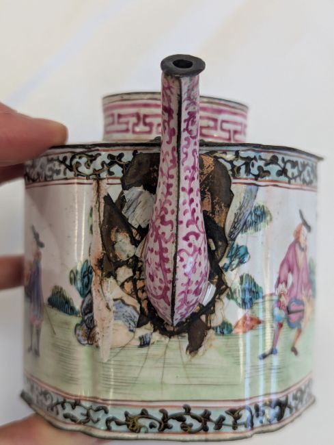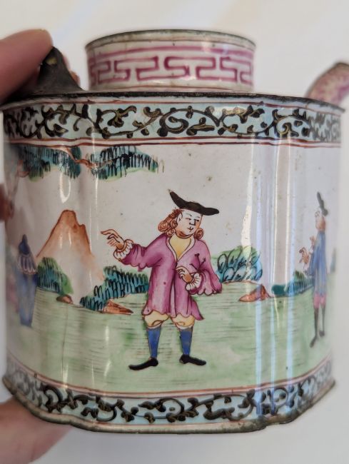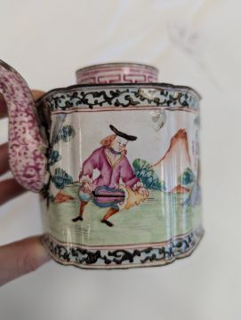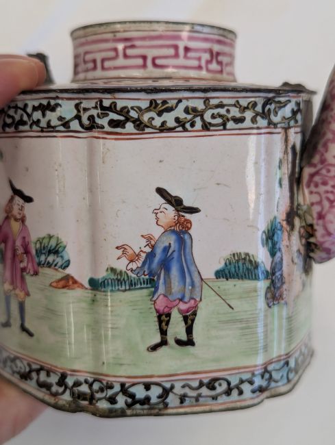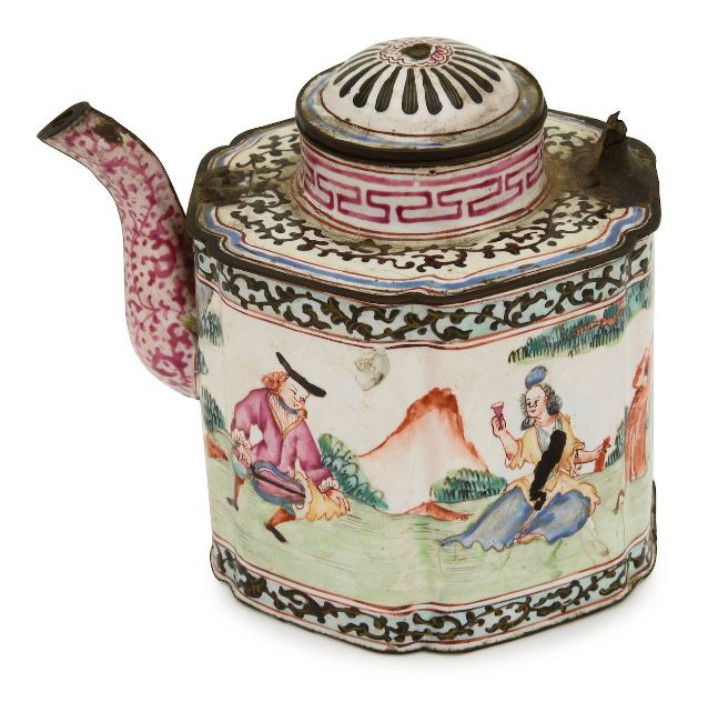 A Canton 'European Subject' enamel teapot