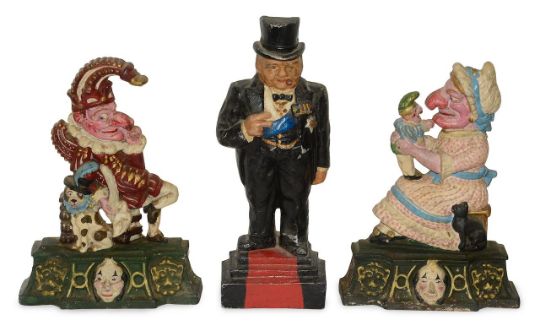 A group of three cast iron door stoppers,