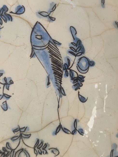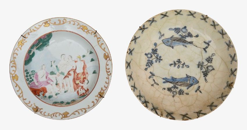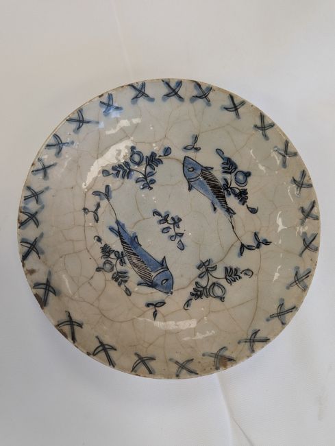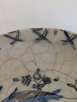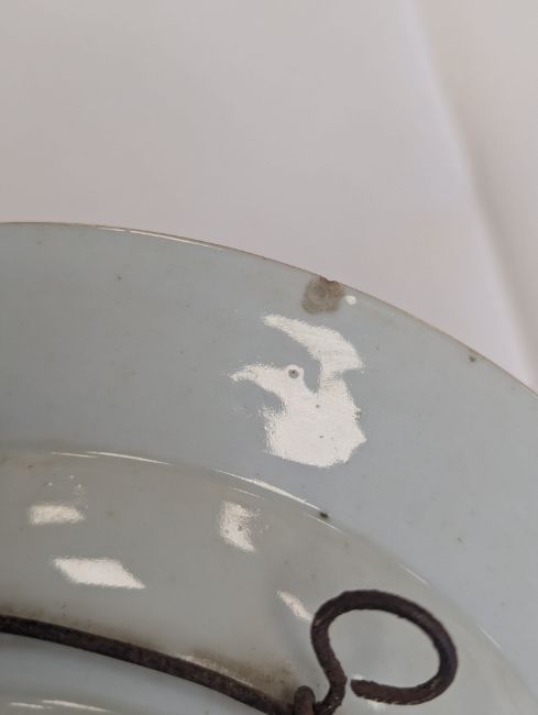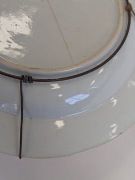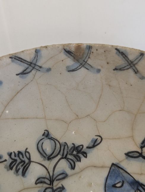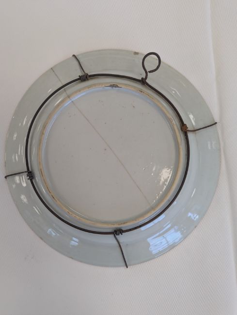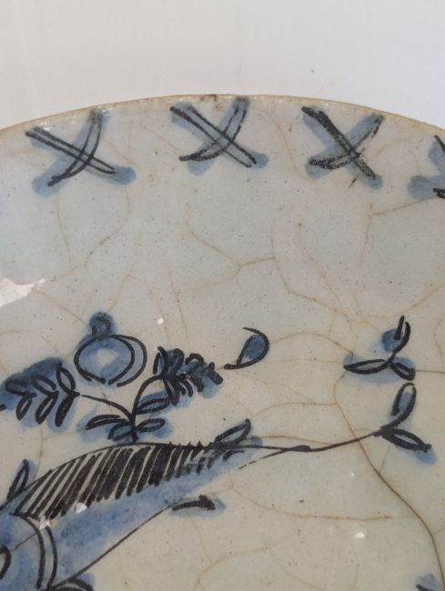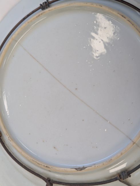 Condition: plate with heavy crack and small chips; dish with chips to rim; both with general wear commensurate with age