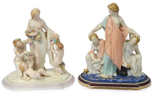 Two Royal Worcester porcelain allegorical figural groups