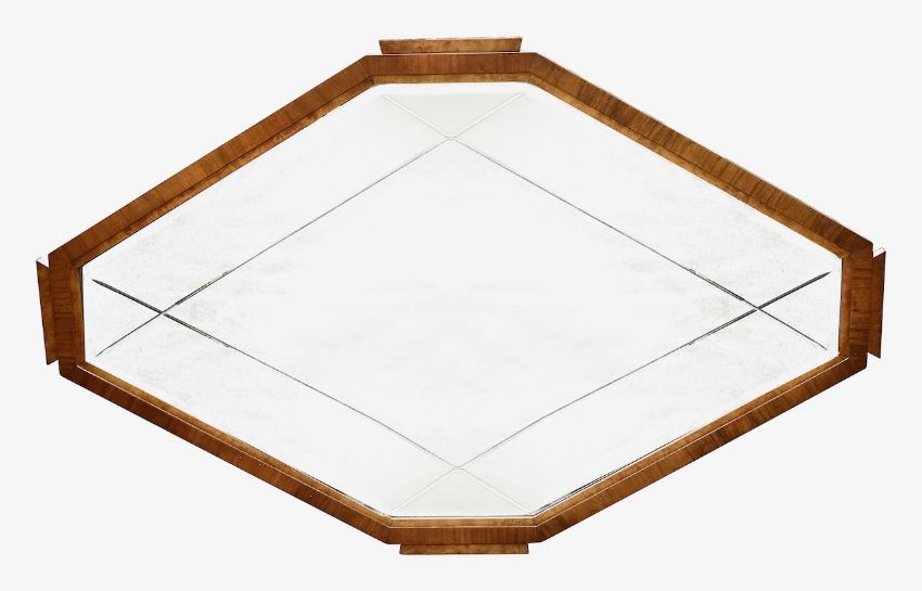 the walnut veneered frame, of octagonal form, with incised diamonds