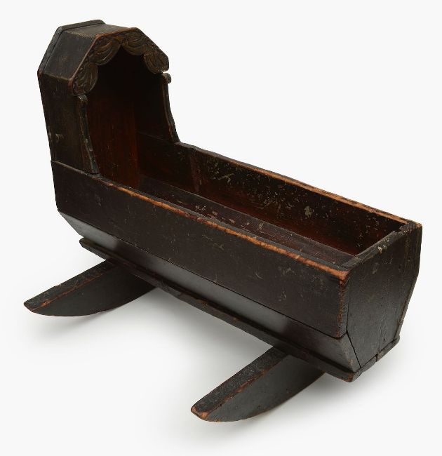 A folk art painted pine doll's crib,