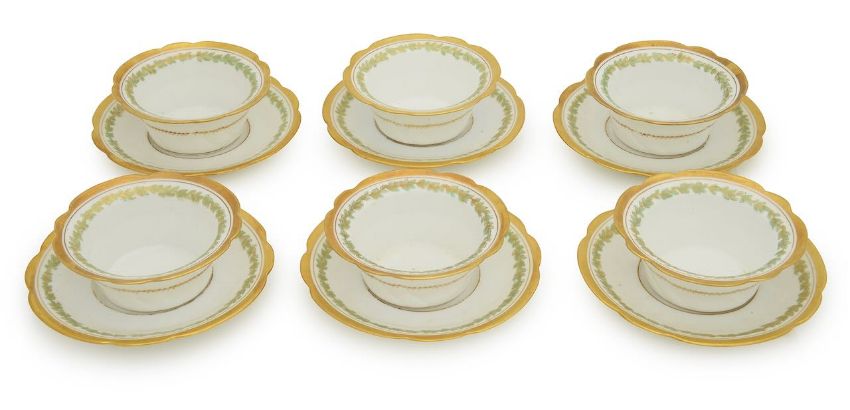 A set of six Limoges porcelain teabowls and saucers, stamped Elite Works, early 20th century,
