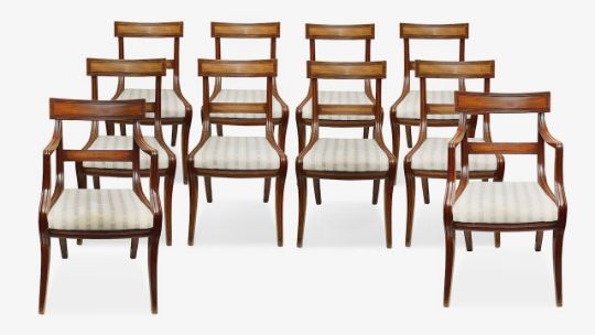 A set of ten Regency mahogany dining chairs