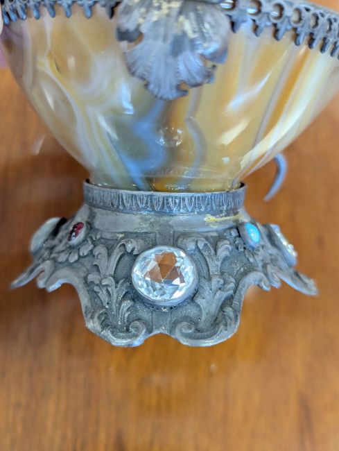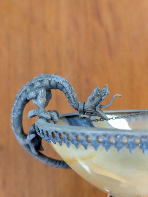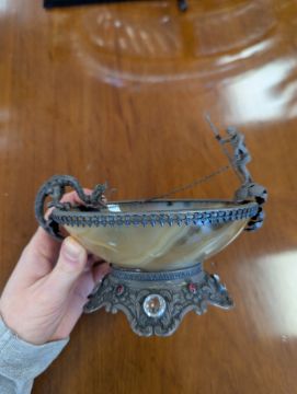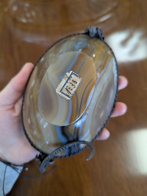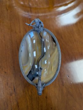 Condition: No chips or cracks to the agate. Minor dent to the base but it does not wobble on a flat surface.