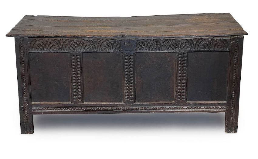 17th century and later, the carved frieze above a four panelled front, raised on stile feet