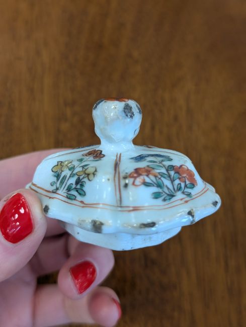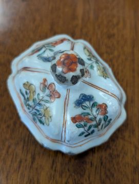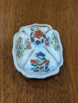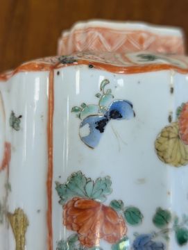 Qing dynasty, the rectangular lobed body with panels of painted butterflies and blossoming flowers