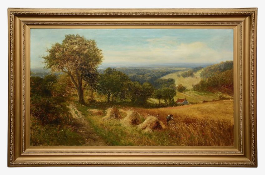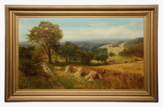 Daniel Sherrin (British, 1868-1940)Detling Hill near Maidstonesigned 'D.Sherrin' (lower-left), oil on canvas,75cm by 176cmCondition: Provenance: A Private Collection.By repute, the work hung for many years in a Kent public house, one of a pair.