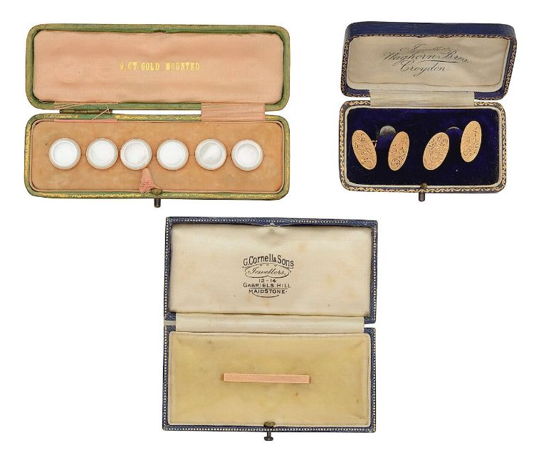 A pair of 15ct cufflinks, 9ct pin and dress studs