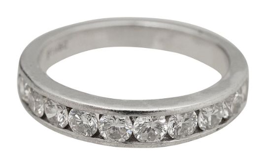 with PT950 stamp with ten round brilliant cut diamonds in a channel setting