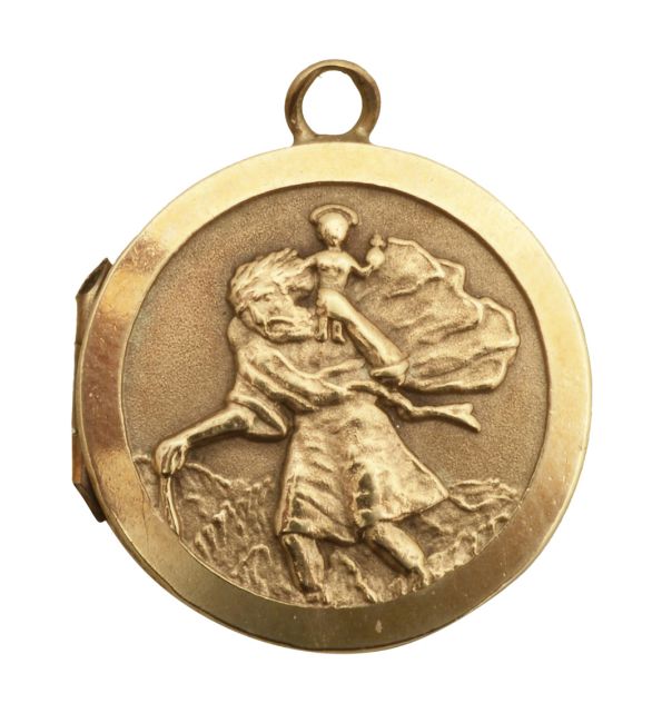 with 9ct Birmingham hallmark 1979, Saint Christopher round locket pendant