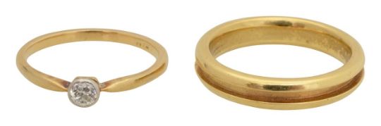 with 18ct hallmark, an engine turned channel ring set with five brilliant cut diamonds and a old cut diamond single stone ring (2)