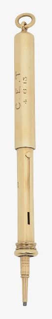 with engraved initials and date, 'C.E.T, 4.6.13', the pull out barrel stamped 'S.Mordan & Co', with dual sliding pencil and fountain pen nib, on a suspension loop